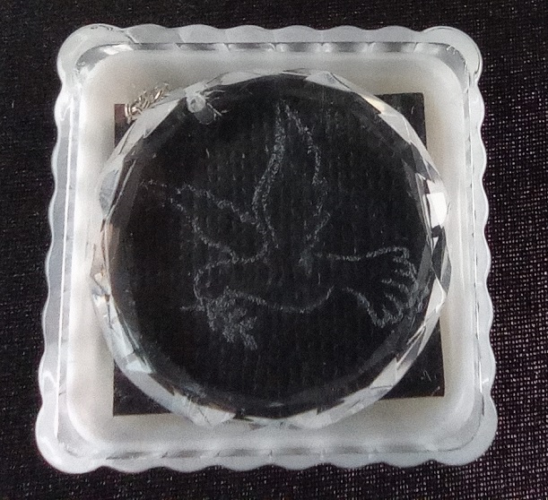 Hanger met gelaserde Duif incl. ketting kristal